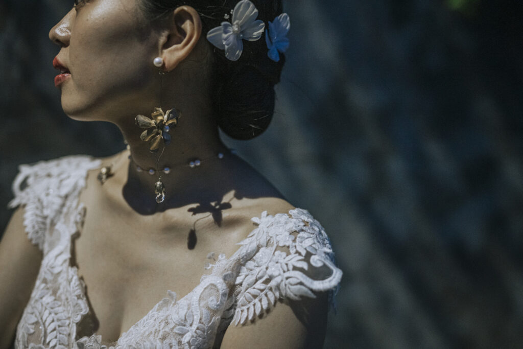 2スタイルのヘアーアレンジ&アクセサリーがSETのため、ドレスを追加オプションにて変更し撮影しました。
